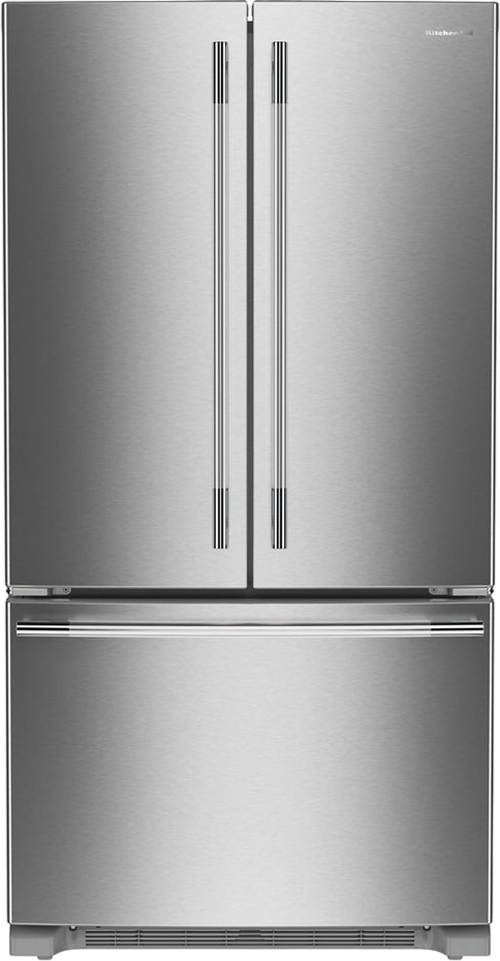 Enjoy freshness within reach. This KitchenAid® counter-depth French door refrigerator features an internal water dispenser to keep the outside looking sleek. Help keep ingredients fresh and flavorful with the Preserva® food care system. Plus, fit more and bigger ingredients with the full-width pantry and adjustable wood-look nesting shelf.Read More