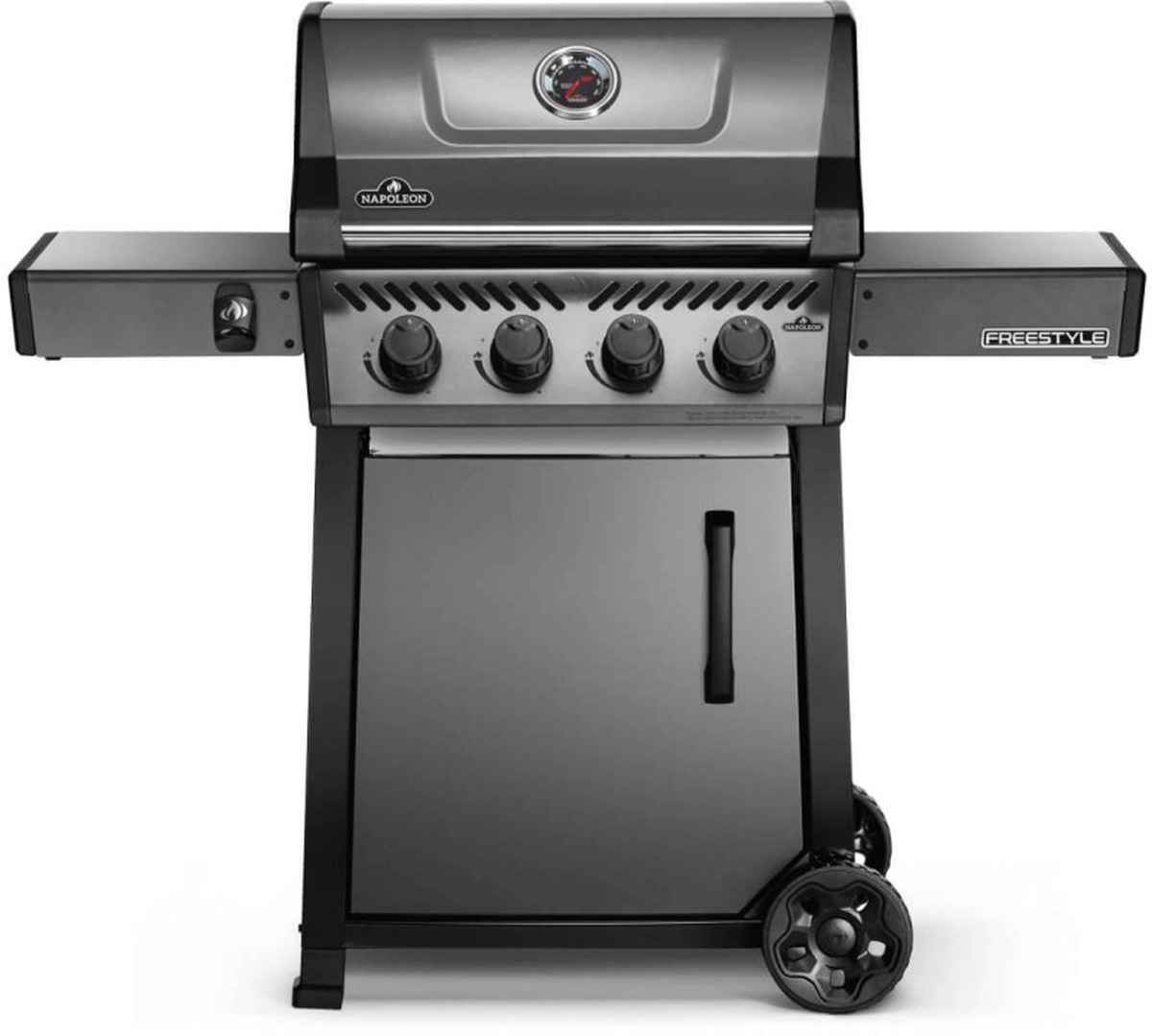 The Freestyle 425 barbecue grill features 4 main burners and 425 square inches of total grilling area, boasting 38,000 BTU’S of grilling power